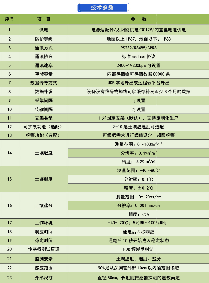 l 測量精度高,性能可靠,受土壤土質(zhì)影響較小,適用于各種土質(zhì);
