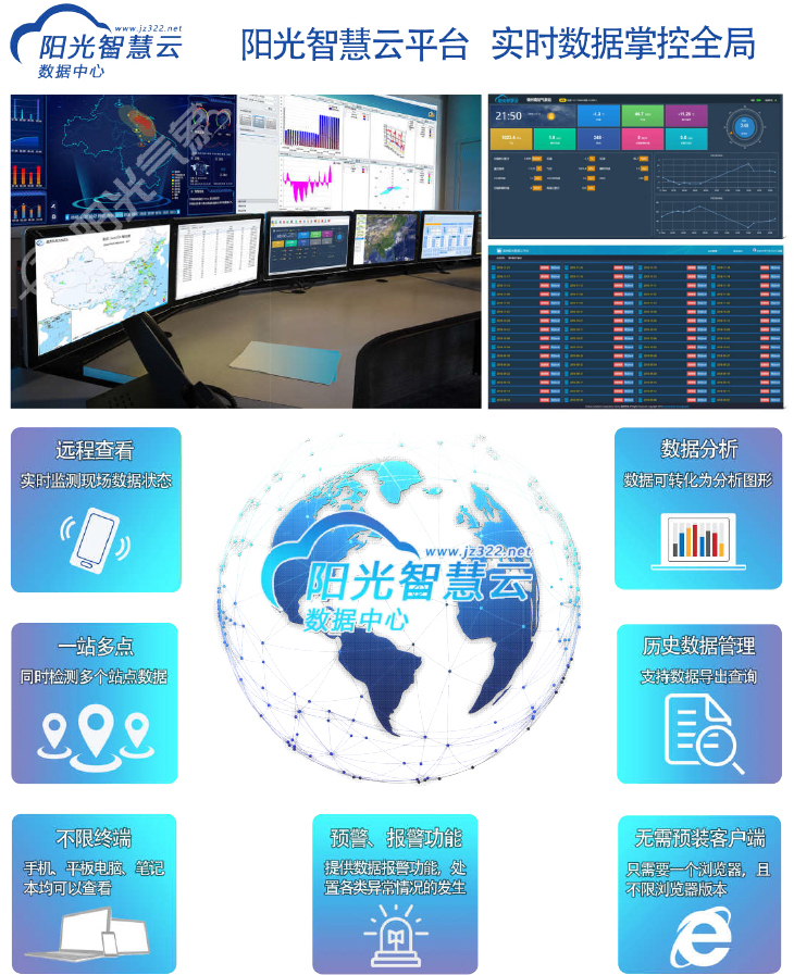 l 監(jiān)測數(shù)據(jù)上傳陽光智慧云平臺,用戶可通過電腦或手機隨時隨地登陸云平臺查看及分析響應(yīng)數(shù)據(jù);