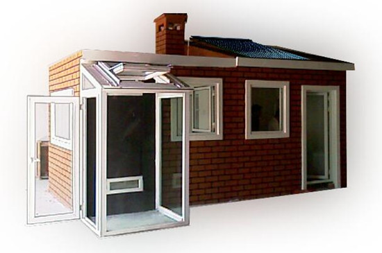 本實驗系統(tǒng)主要有兩間實驗房,用于熱工性能對比。平面尺寸均為2500×2400mm,高度約2000mm。其中一間為平頂,一間為坡頂。房間主體結構為鋼構,墻體為最新專利節(jié)能輕型墻板。主要集中的節(jié)能技術有太陽能光電利用、光熱利用、地板輻射取暖、LOW-E玻璃、遮光板反光板、太陽房、特郎伯集熱墻、導光管、空氣流動演示(配煙霧發(fā)生器)、自然風模擬風扇組、斷橋門窗等最新技術手段,同時還配有獨立的采集監(jiān)測系統(tǒng)。具體組成見系統(tǒng)主要組成表。