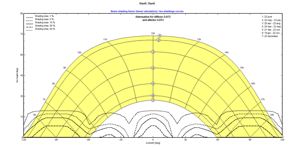 圖11 跟蹤器不同俯仰角及方位角時的遮擋曲線