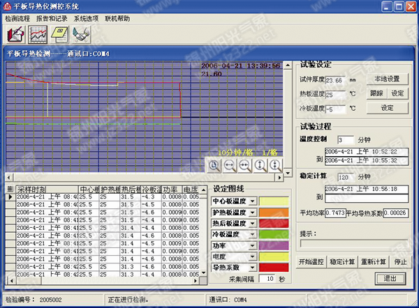 5、智能化的數(shù)據(jù)處理。高度自動化的計算機數(shù)據(jù)通訊和報告處理系統(tǒng),平板導熱儀帶有計算機通訊接口,可以從計算機上設定熱板冷板控制溫度,實時顯示溫度實際曲線。