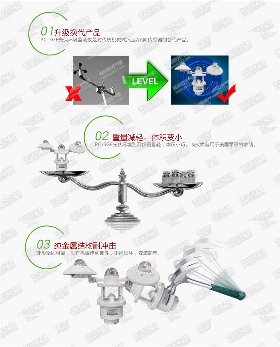 本產(chǎn)品除了可同時(shí)監(jiān)測(cè)環(huán)境溫度、環(huán)境濕度、風(fēng)速、風(fēng)向、氣壓、雨量五大環(huán)境基本要素外,還可以監(jiān)測(cè)光伏電站環(huán)境系統(tǒng)中所必須的太陽(yáng)輻射(水平/斜面)及組件溫度等要素。特別采用了高穩(wěn)定性的太陽(yáng)總輻射傳感器,具有完美的余弦特性、快速響應(yīng)、零漂移和寬溫度響應(yīng)的特性,非常適合太陽(yáng)能行業(yè)的輻射監(jiān)測(cè)使用,兩臺(tái)角度可以任意旋轉(zhuǎn)的總輻射表可滿足光伏行業(yè)光功率預(yù)算需求,是目前最適合光伏電站上使用的領(lǐng)先級(jí)的一體化便攜光伏環(huán)境監(jiān)測(cè)儀。