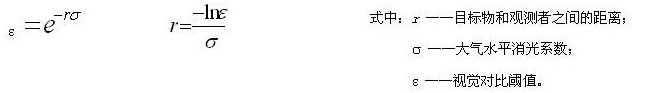 能見度是與人的視覺因素緊密結(jié)合在一起的一種復(fù)雜的心理-物理現(xiàn)象,表示的是可視距離。根據(jù)柯西密德(Koschmieder)定律,對以水平天空為背景的黑體目標(biāo)物,目標(biāo)物和背景視亮度對比可以表示為: