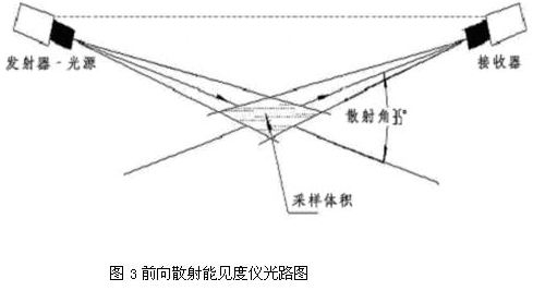 前向散射能見度儀就是根據(jù)以上機理,并選擇合適的光源(波長、光強)和光路結(jié)構(gòu),通過檢測專用光源在指定大氣體積中的前向散射強度,以求得其散射系數(shù),進而根據(jù)相關(guān)數(shù)學(xué)模型演算出大氣能見度值。