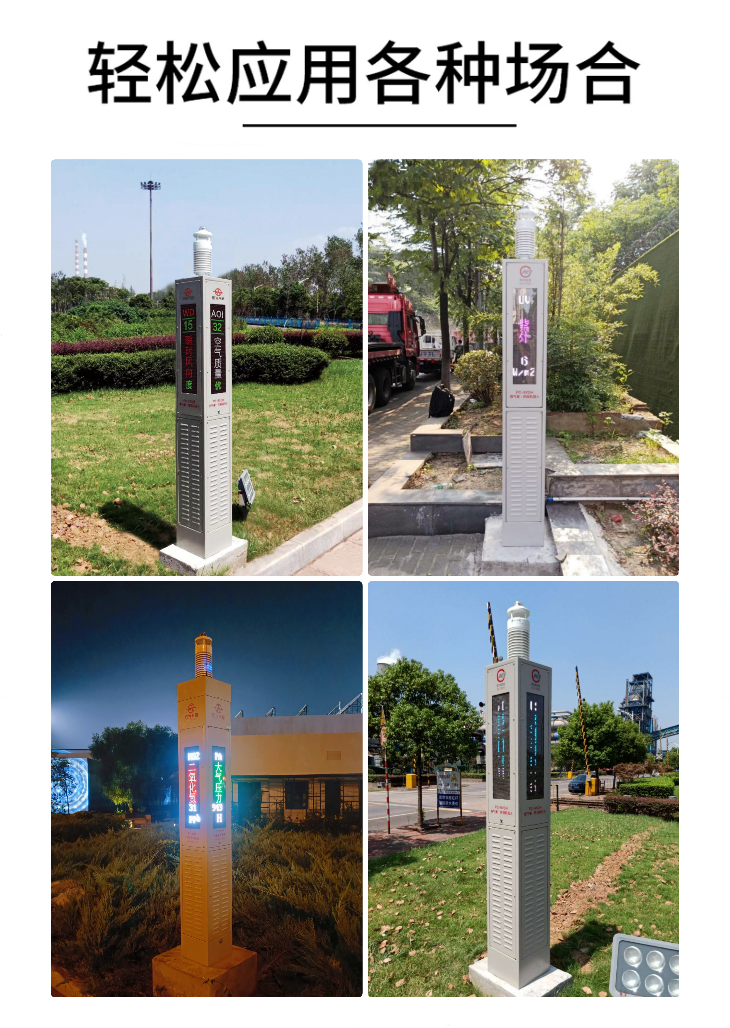 3. 本機自帶四面LED顯示屏,可實時顯示監(jiān)測數(shù)據(jù),也可遠程傳輸至其它大顯示屏;