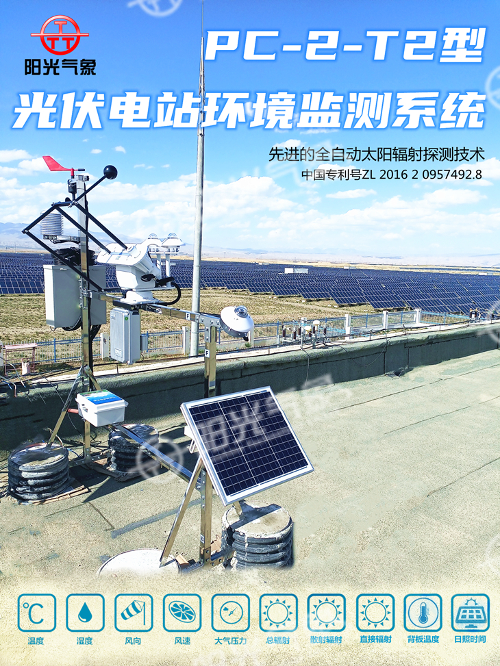 PC-2-T2型光伏電站環(huán)境監(jiān)測系統(tǒng)是我公司按照氣象WMO組織氣象觀測標(biāo)準(zhǔn)及IEC、國電網(wǎng)公司企標(biāo)Q/GDW 617-2011《光伏電站接入電網(wǎng)技術(shù)規(guī)定》、國電網(wǎng)公司企標(biāo)Q/GDW 618-2011《光伏電站接入電網(wǎng)測試規(guī)程》等規(guī)范標(biāo)準(zhǔn)設(shè)計生產(chǎn)研發(fā)的新型光伏電站環(huán)境監(jiān)測站,同時也符合《并網(wǎng)光伏發(fā)電系統(tǒng)工程驗收技術(shù)規(guī)范》等相關(guān)技術(shù)要求。本系統(tǒng)可觀測的環(huán)境輻射要素有:環(huán)境溫度、環(huán)境濕度、組件溫度、風(fēng)速、風(fēng)向、氣壓、傾斜總輻射、日照時數(shù)、水平總輻射、太陽直接輻射、太陽散射輻射等指標(biāo)。具有性能穩(wěn)定,檢測精度高,完全無人值守等特點,可滿足光伏電站環(huán)境氣象監(jiān)測、太陽輻射監(jiān)測等相關(guān)要求。