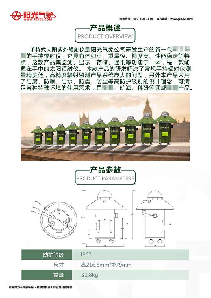TBQ-ZW-SC手持式紫外輻射儀是陽光氣象開發(fā)生產(chǎn)的新一代手持輻射儀。它具有體積小、重量輕、精度高、穩(wěn)定性強(qiáng)等特點(diǎn)。這款產(chǎn)品集監(jiān)測、顯示、存儲(chǔ)、通訊等功能于一體,解決了常規(guī)手持輻射儀精度低,高精度輻射監(jiān)測產(chǎn)品系統(tǒng)龐大的問題。