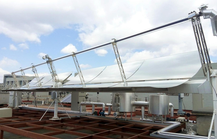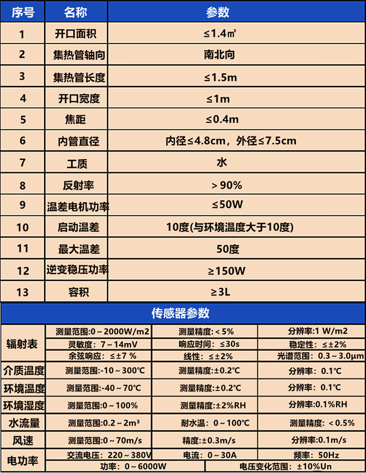 5、系統(tǒng)的支撐結(jié)構(gòu)用于固定槽拋物面聚光鏡,并配合控制系統(tǒng)對集熱陣列進行一維跟蹤,以獲 得有效太陽輻射能;