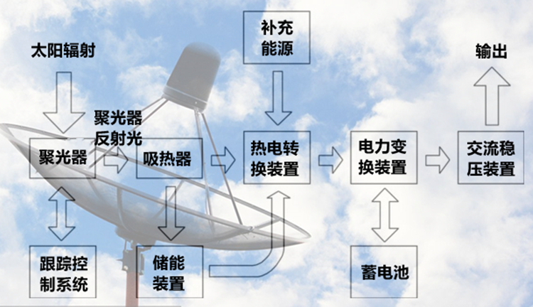 太陽(yáng)能碟式聚光發(fā)電系統(tǒng),是利用拋物面聚光原理制成的一種利用光熱來發(fā)電的系統(tǒng)。包括較復(fù)雜精密的光跟蹤系統(tǒng)、控制系統(tǒng)、機(jī)械系統(tǒng)以及實(shí)驗(yàn)演示系統(tǒng)等部分。