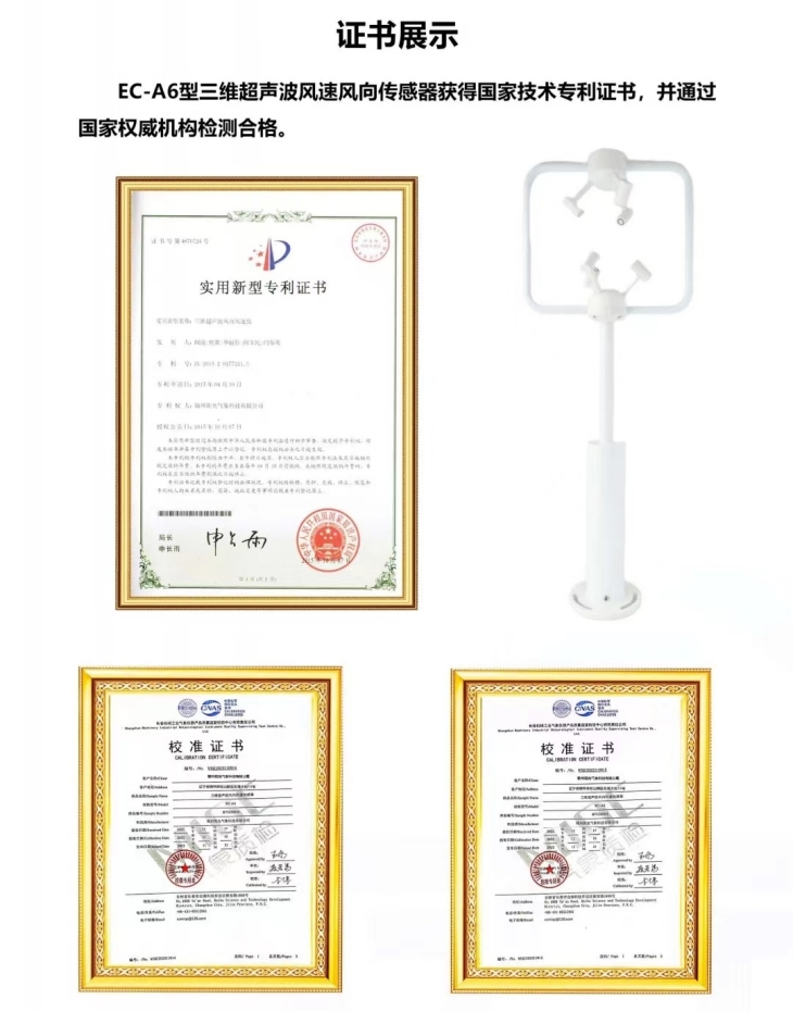 三維超聲波風(fēng)速風(fēng)向傳感器具有結(jié)構(gòu)緊湊,沒有任何移動(dòng)部件,堅(jiān)固 耐用的特點(diǎn)。能夠測量水平和垂直方向的風(fēng)向, X/Y/Z軸風(fēng)速(即U、V、 W矢量輸出)??梢赃m應(yīng)在各種環(huán)境下,全天候、長久的正常工作,為各 領(lǐng)域的氣象監(jiān)測提供可靠數(shù)據(jù)。三維超聲波風(fēng)向風(fēng)速傳感器用來測量近 地風(fēng)向、風(fēng)速。廣泛應(yīng)用于城市環(huán)境監(jiān)測、風(fēng)力發(fā)電、氣象監(jiān)測、橋梁 隧道、航海船舶、航空機(jī)場等領(lǐng)域。