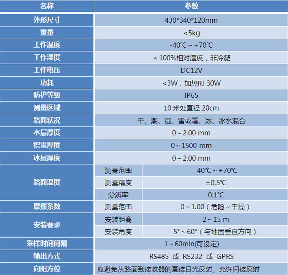 路面溫度采用紅外測溫原理,實(shí)現(xiàn)了非接觸遠(yuǎn)距離精準(zhǔn)測量路面溫度。