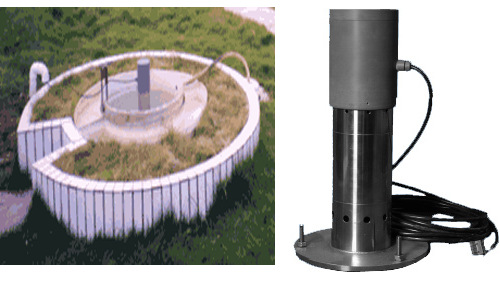 安裝時(shí),將超聲波傳感器和不銹鋼圓筒架放在蒸發(fā)槽中,安裝在蒸發(fā)桶內(nèi)的專用三角支架上。用三個(gè)水平調(diào)整螺釘將不銹鋼筒的底座調(diào)整水平,擰緊固定螺釘。應(yīng)保持不銹鋼圓筒最高水位刻度線稍高于蒸發(fā)桶溢孔。桶內(nèi)注水,使水面接近不銹鋼筒的最高水位刻度線處。保持水面位于最高和最低刻度線之間,超聲波傳感器工作在兩個(gè)水位刻度線之間。傳感器用電纜與數(shù)據(jù)采集器相連。