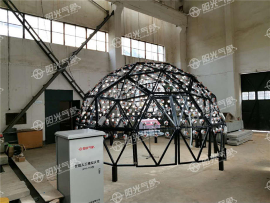 JZYG-TGS型智能人工模擬天穹主要功能有:1、模擬CIE全云天天空,可用于建筑模型的采光實驗,特別是采光系數(shù)的測試,對采光口的研究提供科學的實驗數(shù)據(jù)。2、模擬太陽實時軌跡,通過計算機軟件控制,實現(xiàn)太陽高度角及方位角的自動定位,從而實現(xiàn)了太陽實時模擬。