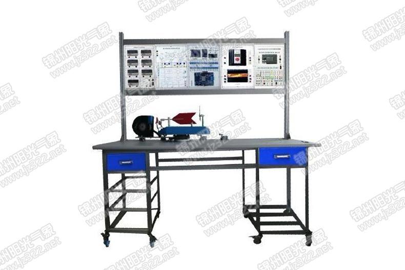 本系統(tǒng)有實驗臺、模擬風(fēng)裝置系統(tǒng)、風(fēng)向跟蹤裝置系統(tǒng)、被控對象掛箱、單片機掛箱、PLC主機掛箱、變頻器掛箱、逆變器掛箱和檢測儀表與負載掛箱等組成。