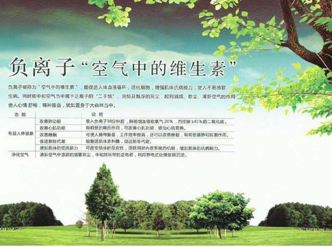 空氣是混合物,由多種分子構(gòu)成,由于自然界的宇宙射線、紫外線、土壤和空氣放射線的影響,空氣中的有些分子就釋放出電子,陰離子??諝夥肿釉诟邏夯驈?qiáng)射線的作用下被電離所產(chǎn)生的自由電子大部分被氧氣所獲得,因而,常常把空氣負(fù)離子統(tǒng)稱為“負(fù)氧離子”,負(fù)氧離子帶負(fù)電,它無(wú)色無(wú)味。