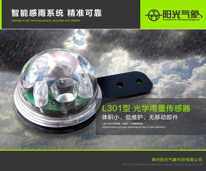 L301型光學(xué)雨量傳感器是錦州陽光研發(fā)的新型光學(xué)雨量傳感器,使用光束的紅外光檢測觸及外表面的雨滴,它比一個(gè)典型的翻斗式雨量計(jì)要靈敏100倍,并單個(gè)計(jì)數(shù)雨滴,發(fā)送脈沖信號。